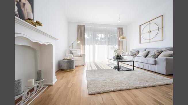 * Wohnbereich und Schlafzimmer sind mit einem Eiche Fertigparkettboden mit Trittschalldämmung ausgestattet