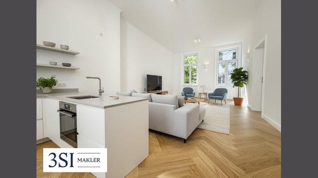 In der eben sanierten Stilaltbau-Wohnung lässt sich eine gediegene Ausstattung mit einer erlesenen Auswahl an Materialien genießen. Die Wohnung wurde mit aufwendig verlegtem Fischgrät-Eichenparkett und mit stilvollen Kassettentüren ausgestattet. Eleganter Deckenstuck und feine Vertäfelungen unterstreichen den einzigartigen Alt-Wien-Charakter. Traditionelle Holzkastenfenster, die durch moderne Isolierverglasung aufgewertet wurden zieren straßenseitig die Fassade. Das moderne Bad begeistert dank Markensanitärprodukten, einer Einbauwanne und einer Dusche mit erstklassiger Qualität, Komfort und Design.