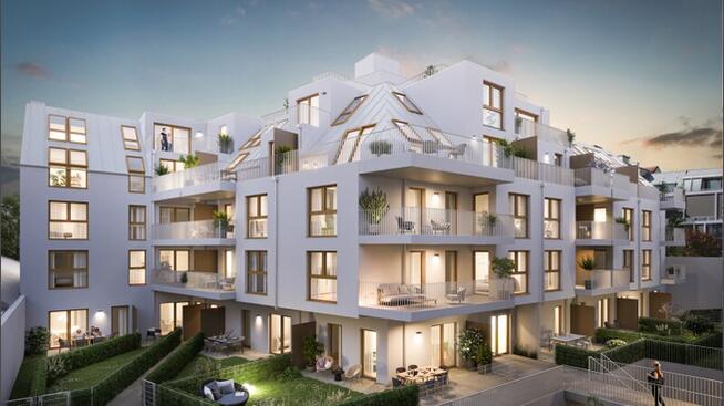 Alle Eigentumswohnungen verfügen über 2 bis 5 Zimmer mit Größen von ca. 37 bis 180 m² und perfekt konzipierten Grundrissen. Großzügige Balkone, Terrassen und atemberaubende private Gärten auf verschiedenen Ebenen erhöhen den Wohnkomfort. Ein besonderes Highlight ist der begrünte Innenhof, der sowohl ein Treffpunkt als auch eine Ruheoase ist. Dort, wo Nachhaltigkeit, Ästhetik und Lebensqualität aufeinandertreffen, entsteht eine unwiderstehliche Versuchung: ein modernes, frisches Leben, das zum Verlieben schön ist.