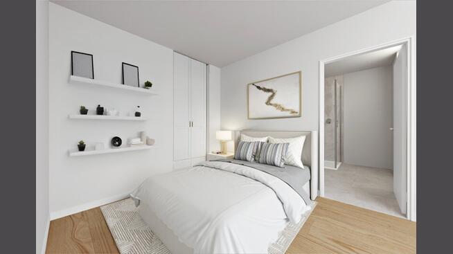 Nach dem Betreten der ca. 31 m² großen 2-Zimmer-Wohnung befindet man sich im offen gestalteten Vorraum, welcher idealen Platz für eine Garderobe, oder einen Schrank bietet. Die angeschlossene Wohnküche mit etwa 16 m² bietet viel Licht dank bodentiefen faltbaren Fensterflächen sowie einem schmalen Balkon mit 2,57 m² Größe. Im Wohnbereich lassen sich eine Couch und ein kompakter Essbereich wunderbar einrichten. Sämtliche Anschlüsse für die zukünftige Planung seiner individuellen Küchenzeile sind natürlich vorbereitet.