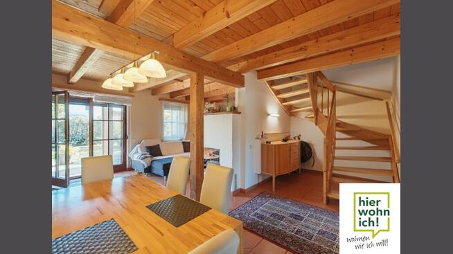 Hochwertiges Holzambiente zum Wohlfühlen: Erleben Sie die einzigartige Wärme dieses Wohnraums, dominiert von edlen Holzakzenten und einem Hauch von Rustikalität. Der natürliche Terracotta-Fliesenboden ergänzt das warme Holz perfekt und unterstreicht den behaglichen, aber stilvollen Charakter. Ein echter und eleganter Holzofen spendet angenehme Wärme.