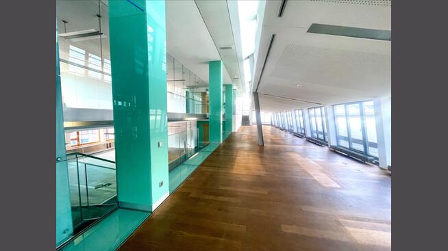 Über zwei miteinander verbundene Etagen, erschlossen durch eine stylische interne Treppe, entfaltet sich ein flexibles Raumkonzept, das durch lichte Galeriebereiche zusätzliche architektonische Akzente setzt. Die offene Gestaltung (Open Space) wird harmonisch ergänzt durch repräsentative Einzelbüros und Besprechungsräume, elegant separiert durch moderne Glastrennwände.