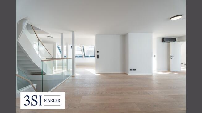 Ein eleganter Personenlift mit Direktzugang führt Sie unmittelbar in den einladenden Wohnbereich dieser außergewöhnlichen Drei-Zimmer-Dachgeschosswohnung mit rund 131 m² Wohnfläche. Alternativ ist der Zugang auch über das 1. Dachgeschoss möglich – über eine stilvolle Treppe gelangt man in den geschmackvollen Vorraum mit Garderobenbereich und einem dezent integrierten Gäste-WC.