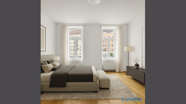 Diese elegant sanierte 3-Zimmer-Wohnung vereint den zeitlosen Charme eines repräsentativen Altbaus mit hochwertiger, moderner Ausstattung. Auf rund 84 m² überzeugt der Grundriss mit einer großzügigen Wohnküche, zwei gleichwertig großen Schlafzimmern, einem separaten WC sowie einem geschmackvoll verfliesten Badezimmer mit Dusche. Dank der Lage im 1. Liftstock und großformatiger Fenster ist die Wohnung außergewöhnlich hell – ideal für alle, die lichtdurchflutete Räume, klare Linien und erstklassige Materialien schätzen.