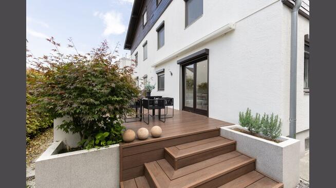 Die Terrasse ist aufgrund Ihrer Beschaffenheit sehr pflegeleicht, viel Grün und das Mühlwasser vor der eigenen Haustüre ersetzen den Garten und machen vor allem keine zusätzliche Arbeit.