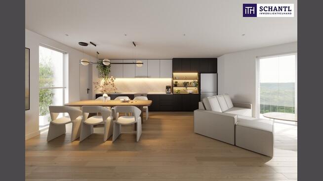 Die Wohnküche bildet das Herzstück der Wohnung – großzügig, hell und mit direktem Zugang zum privaten Garten. Dieser lädt zum Entspannen, Gärtnern oder gemütlichen Beisammensein ein. Die Loggia an der Nordwestseite sorgt zudem für einen weiteren geschützten Außenbereich.