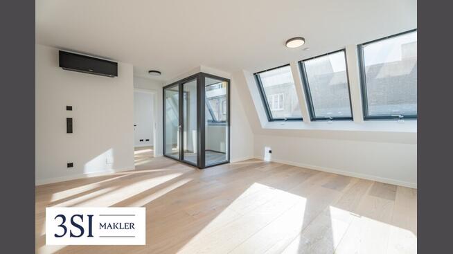 Die Dachgeschosswohnungen – drei Einheiten im 1. Dachgeschoß und das Penthouse im 2. Dachgeschoß – bilden das architektonische Highlight des Projekts. Großzügige Fensterfronten lassen die lichtdurchfluteten Räume erstrahlen und eröffnen eindrucksvolle Ausblicke über die Stadt.