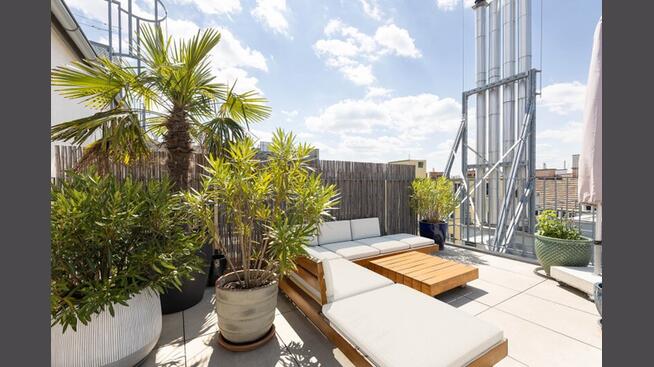 Herrliche Abendstimmung inkl. Blick auf die bunten Lichter des nahen Praters, den Kahlenberg und den Stephansdom genießt man auf der schön gestaltbaren, Süd-West-seitigen Terrasse. Entweder bei einem gemütlichen Abend mit seinen Liebsten oder bei einer feinen Grill-Session mit Freunden.