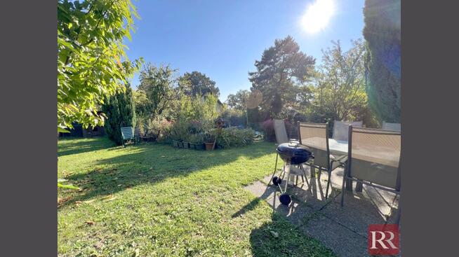 Das Grundstück umfasst laut Grundbuch etwa 929m² Fläche, fällt von der Straße leicht nach Osten ab und bietet einen sonnigen, gepflegten Garten mit Pool – ideal für die ganze Familie.