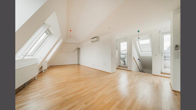Der Vorraum ist großzügig gestallte und bietet reichlich Platz für eine Garderobe und Lagermöglichkeiten. Geht man durch die linksseitige Tür so findet man sich im Masterbedroom wieder. Dieses besticht durch ein exklusives en-suite Badezimmer sowie einem Schrankraum. Über den Flur gelangt man zu den anderen beiden Zimmern welche vielseitig genutzt werden können. Sei es als Arbeits-, Gäste- oder Kinderzimmer. Angrenzend befindet sich, dass zweite Badezimmer. Dieses ist modern verfliest und mit einem Doppelwaschbecken, einer Badewanne sowie einem Waschmaschinenanschluss ausgestattet. Über die Treppen gelangt man in das 2. Dachgeschoß. Hier befindet man sich im Herzstück der Wohnung. Der Wohn- und Essbereich ist offen und einladend gestaltet, perfekt für gemütliche Abende oder gesellige Beisammensein. Die vollausgestattete Küchenzeile mit moderner Optik lässt für einen Hobbykoch keine Wünsche offen. Alle Räume sind mit hohen Fensterfronten versehen, durch welche die Zimmer mit reichlich Licht erfüllt werden. Der hochwertige Parkettboden rundet die wohnliche Atmosphäre der Wohnung perfekt ab. Das Absolute Highlight sind die beiden Dachterrassen. Die Freifläche im 2. Dachgeschoss biete einen Atemberaubenden Blick über die Dächer Wiens und verfügt zeitgleich über genügen Platz für ein Oudoor-Garnitur. Ein separates Gäste-WC befindet sich ebenfalls im 2. Dachgeschoss.