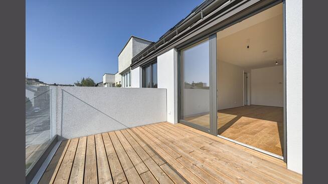 Das geräumige Wohnzimmer ist Dank der bodentiefen Fensterfronten lichtdurchflutet und bietet einen schönen Blick auf die Umgebung. Der Echtholzparkettboden verleiht dem Raum Eleganz, während die elektrisch bedienbare Außenbeschattung die Privatsphäre wahrt. Die offene Küche ist modern und funktional gestaltet und verfügt über hochwertige Einbaugeräte sowie ausreichend Stauraum. Mit einer Zimmergröße von ca. 19m² bietet das Schlafzimmer ausgesprochen viel Platz und Privatsphäre durch das anliegende ensuite Badezimmer. Dort befinden sich eine große Badewanne, ein Waschtisch mit praktischer Ablagefläche sowie ein Handtuchtrockner. Vom Vorraum aus sind zudem noch das separate WC und der Abstellraum mit Waschmaschinenanschluss zu erreichen. Der Zugang zum Balkon befindet sich im Wohnzimmer. Dieser bietet Raum für Outdoor-Genuss und Entspannung.