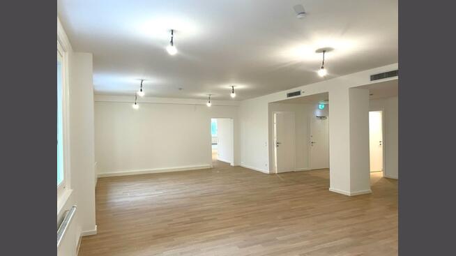 Diese ca. 121 m² große Bürofläche besticht durch ihre klare Struktur und ein modernes Ambiente. Das Herzstück bilden zwei großzügige Büroräume, die vorwiegend als Open-Space konzipiert sind. Dies ermöglicht eine flexible Gestaltung – ob als inspirierendes Team-Büro, moderner Coworking-Space oder repräsentative Kanzlei.