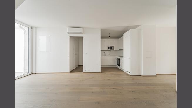 Die Wohnung teilt sich wie folgt auf: ein Vorraum, eine Wohnküche mit Zugang zum Balkon, ein Schlafzimmer sowie ein Badezimmer mit Toilette. Zur Ausstattung zählen ein hochwertiger Parkettboden, außenliegende elektrisch bedienbare Beschattung, eine Gegensprechanlage sowie Klimasplitgeräte im Wohn- und Schlafzimmer.