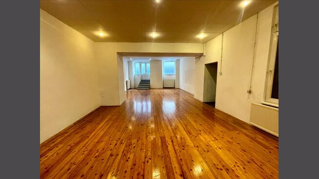 Großzügiges Raumkonzept: Das Herzstück bildet ein weitläufiger Open-Space-Bereich, der mit klassischem Parkettboden ausgestattet ist – ideal für Ateliers, Showrooms oder moderne Office-Konzepte.