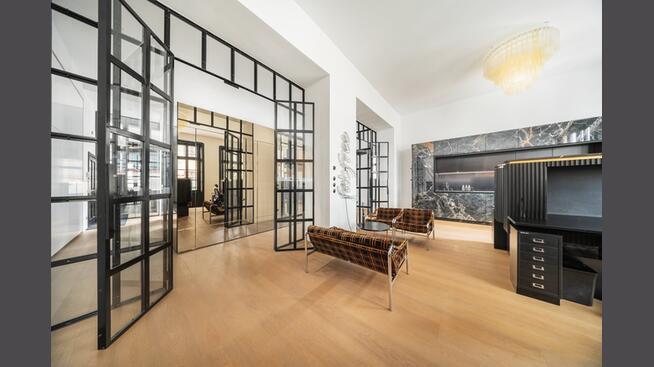 Die Einheit wurde mit viel Liebe zum Detail gestaltet. Hohe Räume und großzügige Fensterfronten sorgen für ein lichtdurchflutetes Ambiente, während edle Materialien eine warme, professionelle Atmosphäre schaffen.