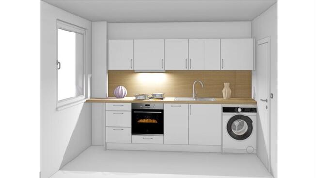In der separat liegenden rund 7 m² großen Küche wird Anfang Mai eine neue Einbauküche samt Geräten des heutigen Standards montiert. In der Küche befindet sich auch der Waschmaschinen-Anschluss. Das zugehörige Rendering der Küche zur besseren Darstellung vorab finden Sie am Ende des Exposés unter den Fotos.